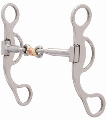 Professional Argentine Bit with Copper Wire Wrapped DogboneFeatures a 5" sweet iron copper wire wrapped dogbone mouth and 6½" Argentine cheeks. Attractive polished stainless steel finish.MSRP: $36.39
