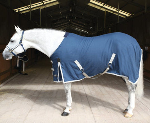Professional's Choice Day SheetMade of soft, breathable cotton-poly blend, the Professionals Choice Day Sheet can be used alone, or as a layer underneath a heavier blanket.  Professional's Choice Day Sheet Key Features:double strap front closure, crisscross belly straps & adjustable elastic leg straps keep the blanket securely in place nylon lining at the chest & fleece lining at the withers prevent rubbingNavy w/ Silver Trim.Sizes: 68", 70", 72", 74", 76", 78", 80", 82" or 84"Manufacturer 30-Day Money Back Guarantee/Six Month warranty or as required by law.