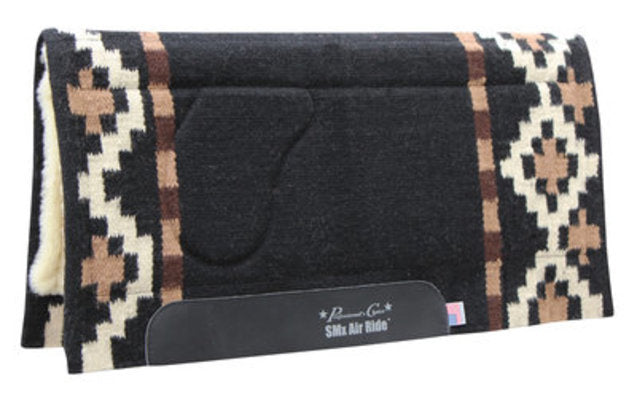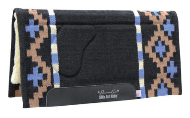 SMx Air Ride Western OrthoSport Saddle Pad The SMx Air Ride Western OrthoSport Saddle Pad is designed for the strong shouldered or prominent withered horse to help obtain maximum levels of comfort.SMx Air Ride Saddle Pad Features:1/2" breathable Air Ride coresecond layer of padding in dished out areas behind the shoulder and along spine.SMx Air Ride Saddle Pad Benefits:extra padding helps achieve a better saddle fitevenly distributes pressure across the back to relieve pressure from sensitive withers and kidney areasSize Available: 34" x 36"