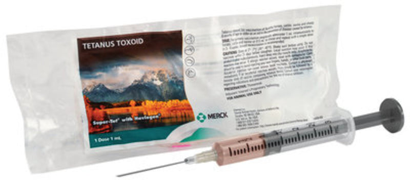 Super-Tet Vaccine by Merck A tetanus toxoid vaccine providing long-term protection against tetanus in animals 6 months of age or older.Super-Tet is best for use in:cattlehorsessheepswine Directions:Give cattle, horses and swine 1 mL IM. Give sheep 0.5 mL IM. Repeat in 3-4 weeks. Booster annually or at the time of injury.View manufacturer and/or label information