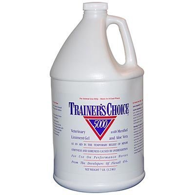 Trainer's Choice 5000 Horse Pain Relieving Gel with Aloe(Ari-Med) A topical pain relieving gel with a special Aloe Vera base that will not cause positive results in post-competition drug testing. Benefits and Usage:For use as a brace liniment and body wash to relieve musclejoint pain on animals involved in athletic or performance activitiesInstructions: Apply to painful muscles and joints, gently massage. Use before and after exercise. Repeat as needed for temporary relief of minor arthritis pain, simple backache, strains, sprains, bruises and cramps. Safe for use under standing bandages, with ice or cold water and with ultrasound.View manufacturer and/or label information