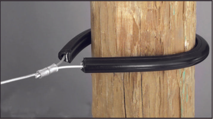 For corners and ends on any style post. Flat-sided design resists rolling. 19" black polyethylene with a 20", 18 gauge galvanized steel insert to take high-tensile strain. (#1779)Use code (Z1FB) for a FREE Dare High Tensile System Fence Booklet.
