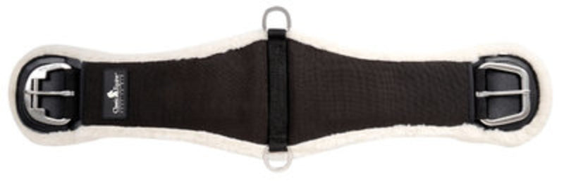 Classic Equine SensorFlex Roper CinchNow in black!Soft and flexible with a fleece backing and a padded nylon upper. Fleece padding is treated to resist bacteria growth. The contoured design follows the natural shape of the horse's heart girth. Stainless steel hardware with roller buckle for easier cinching.Recommended for use only with leather latigos to allow the horse to expand naturally.MSRP: $83.99.