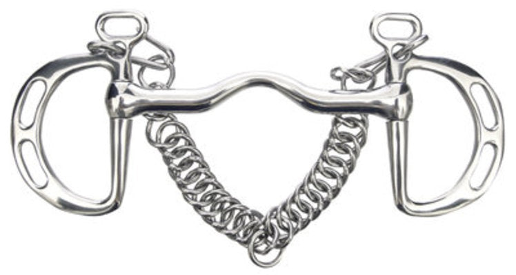 Kimberwick Uxeter Horse Bit Similar action to the Kimberwick. However, the slots in the d-shaped bit rings allow the rider to per-determine the amount of lowering action the bit has. When the rein is attached to the upper slot, the pressure over the pole is less than if the rein is attached to the lower slot. This creates less of a lowering effect.Dee Size: 3" Mouth Thickness: 14 mm Mouth Sizes: 5"Learn More About Types of Bits HereOpens in new window or tab.