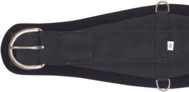 Neoprene Roping Horse Cinch Cross-hatch design in the PVC neoprene back allows for air circulation & comfort to the horse. Strong 4-ply nylon web top with nylon hook fasteners allows easy removal for cleaning. Heavy flat stainless steel hardware with center dee rings. 7 stitches per inch. 6 mm neoprene. Black only.Made in China